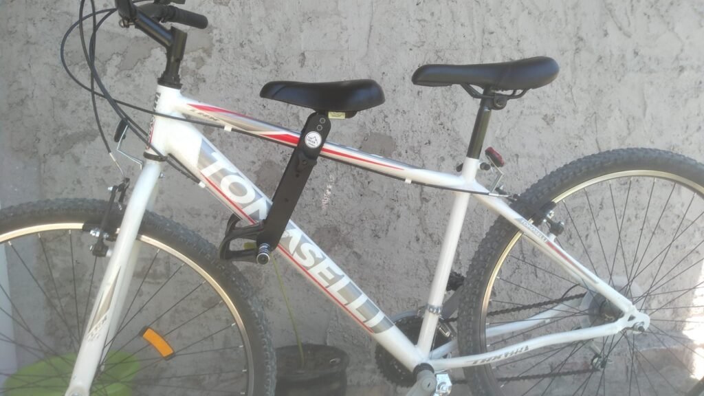 Mantenha seu filho perto e seguro com nossa resistente cadeirinha selim dianteira para bicicleta.
